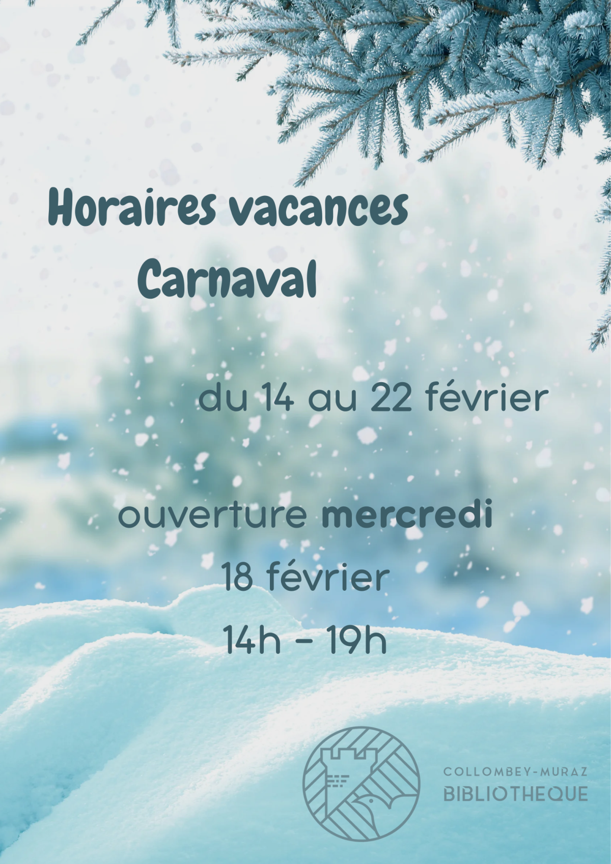 Du 14 au 22 févier, ouverture uniquement le mercredi 18 février : 14h-19h