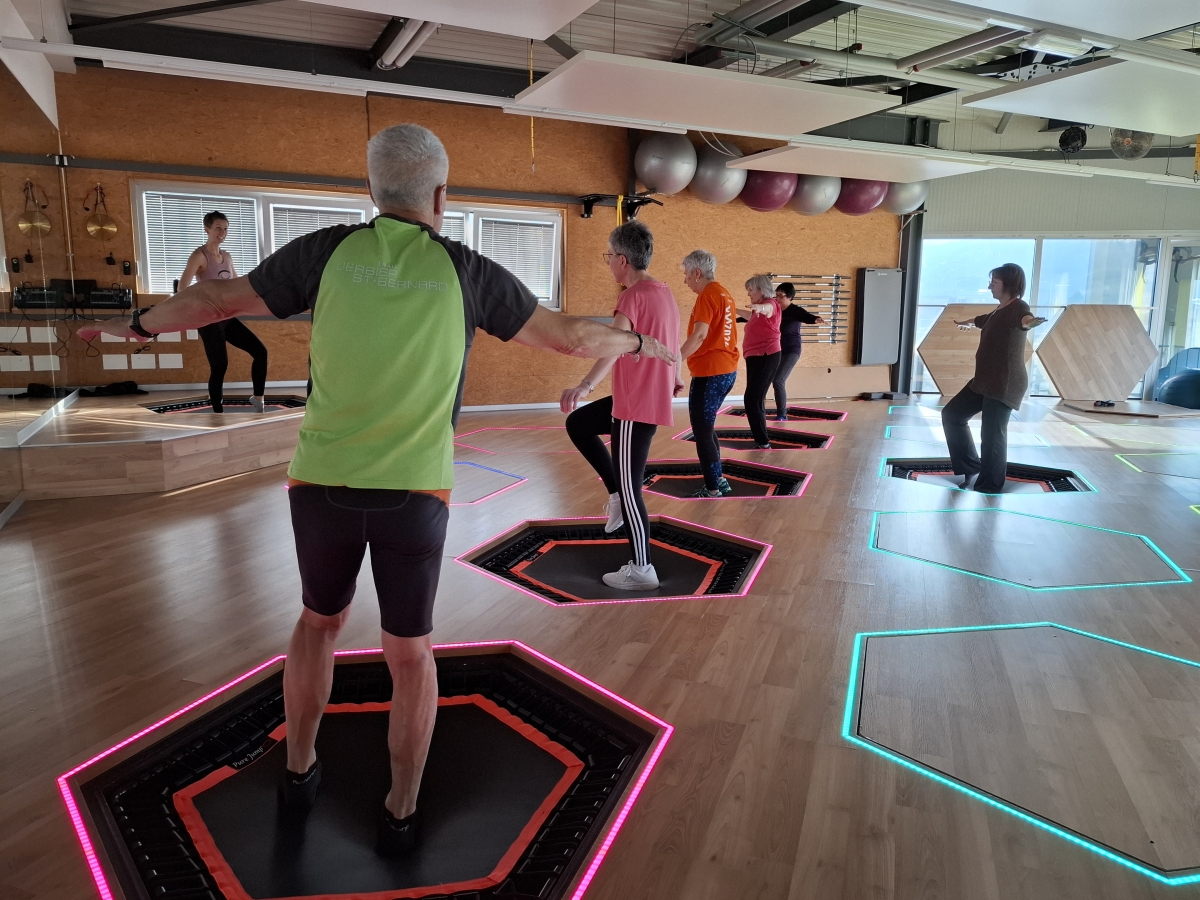 Grâce à ce cours de renforcement musculaire, couplé à l'utilisation de trampolines et d'accessoires, venez gagner en force, équilibre, tonicité et mobilité.